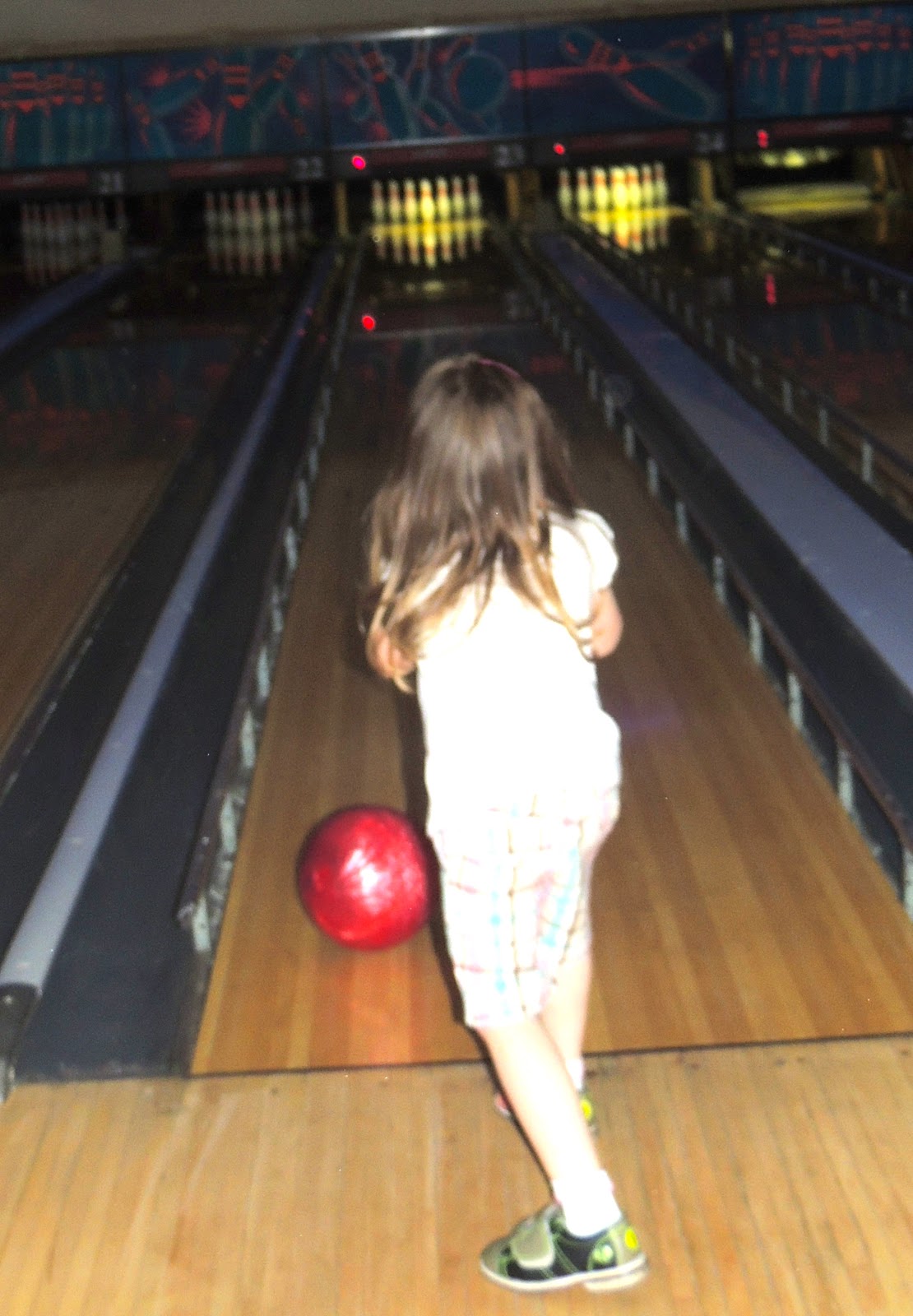 (Landon had his 5th birthday party at a bowling alley, so Aylin got to bowl for the 1st time)